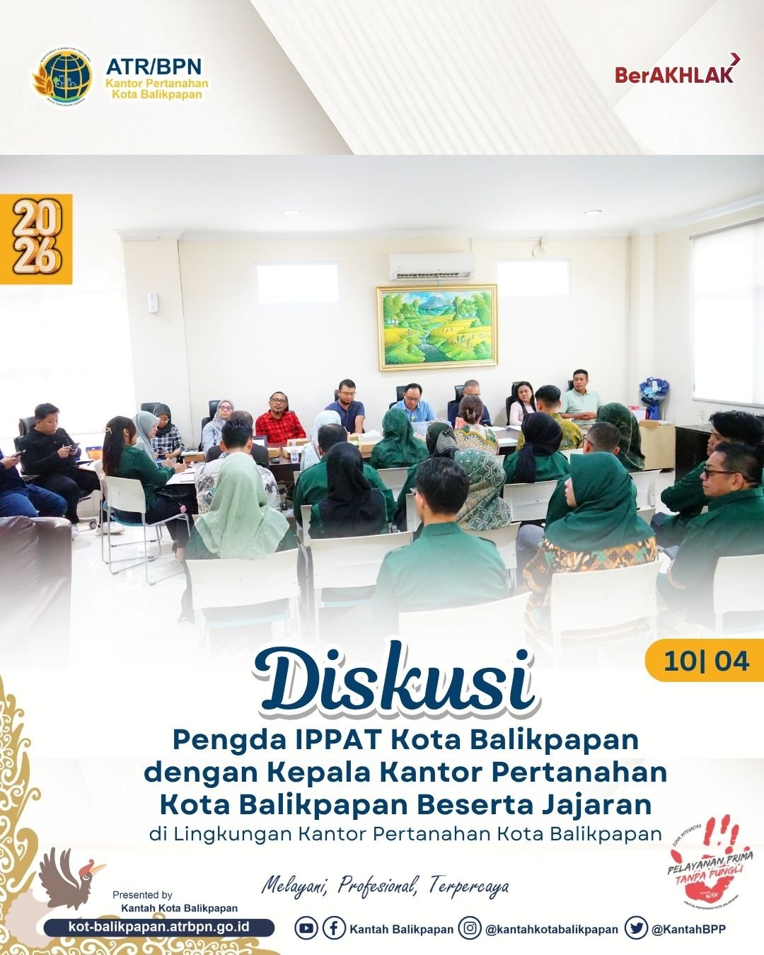 BALIKPAPAN, Fokusborneo.com   — Kantor Pertanahan Kota Balikpapan menggelar diskusi bersama Pengurus Daerah Ikatan Pejabat Pembuat Akta Tanah (IPPAT) Kota Balikpapan pada Jumat (10/4/2026). Kegiatan ini diinisiasi oleh Novita Florens Palungkun, S.H., M.Kn bersama para Pejabat Pembuat Akta Tanah (PPAT) yang berpraktik di Balikpapan.