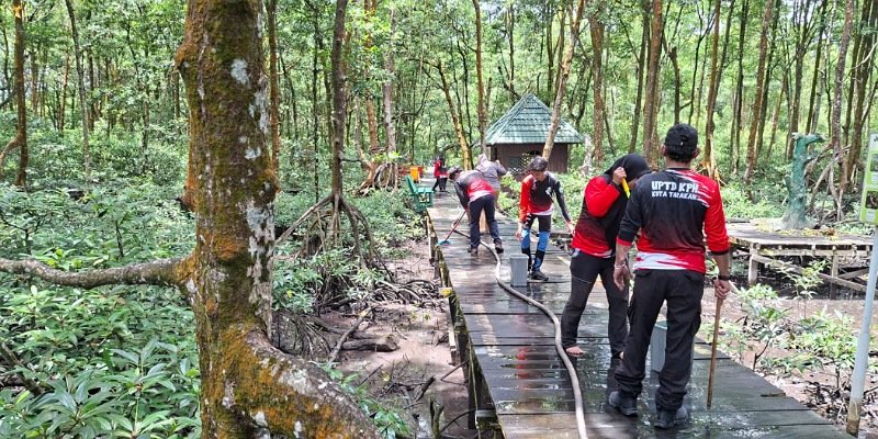 TARAKAN – UPTD Kesatuan Pengelolaan Hutan (KPH) Kota Tarakan secara periodik selalu melakukan kegiatan bersih-bersih di Kawasan Konservasi Mangrove dan Bekantan (KKMB) Tarakan.