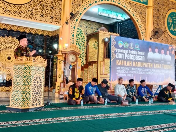 TIDENG PALE – Ibrahim Ali melepas kafilah Kabupaten Tana Tidung untuk mengikuti Lomba Musabaqah Tilawatil Qur’an (MTQ) ke VIII tingkat Provinsi Kalimantan Utara (Kaltara), Jumat (16/6/2023). MTQ Ke VIII akan dilaksanakan di Kota Tarakan.