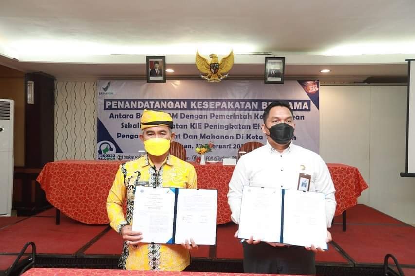 TARAKAN – Wali Kota Tarakan, dr. H. Khairul, M.Kes., dan Kepala Balai Pengawas Obat dan Makanan (POM) di Tarakan menandatangani kesepakatan bersama antara Pemerintah Kota Tarakan dengan Badan POM tentang Pengawasan Obat dan Makanan.