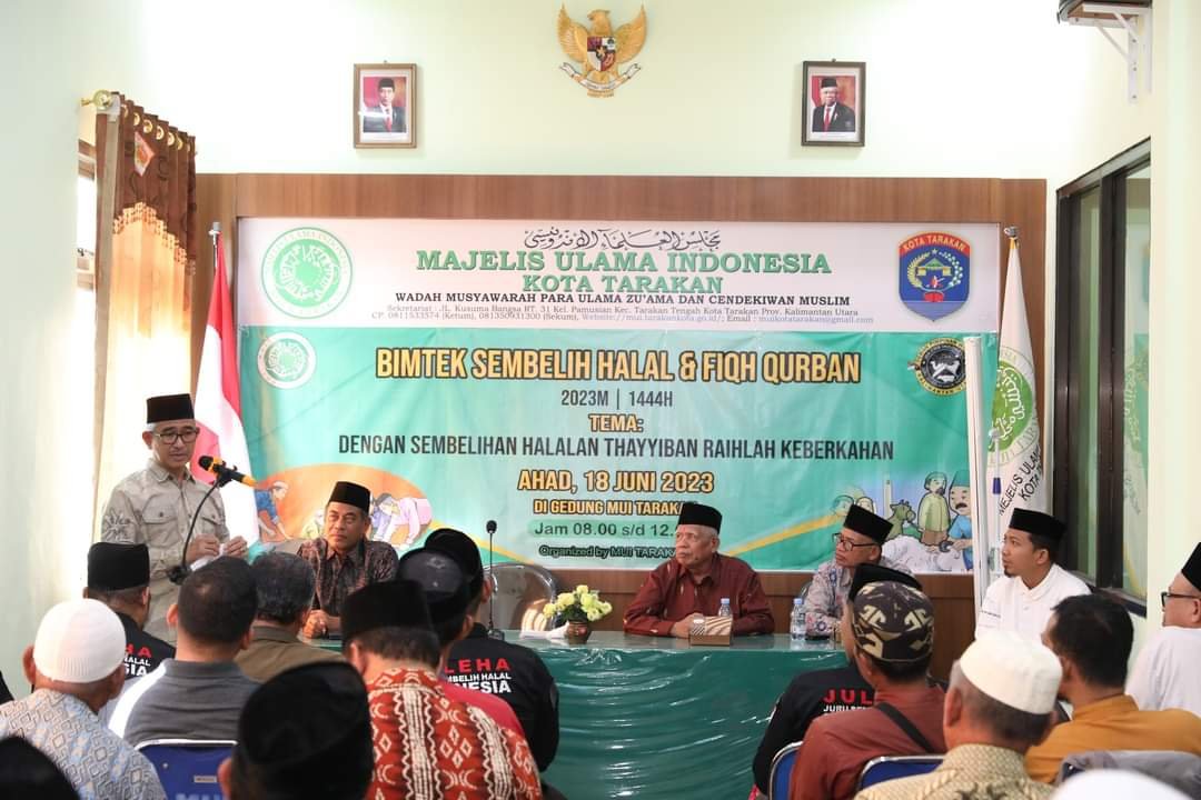 TARAKAN – Wali Kota Tarakan, dr. H. Khairul, M.Kes., membuka secara resmi Bimbingan Teknis Sembelih Halal dan Fiqh Qurban yang digagas oleh MUI Kota Tarakan bersama DPW JULEHA (Juru Sembelih Halal Indonesia) Kalimantan Utara. Acara tersebut berlangsung di Aula Gedung MUI Kota Tarakan pada Minggu (18/6/2023).
