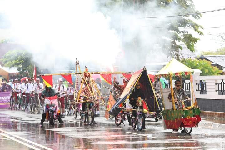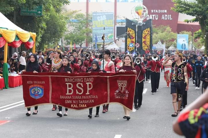 TARAKAN – Pawai Budaya Festival Iraw Tengkayu XII di Kota Tarakan berlangsung meriah. Pawai ini diikuti oleh ratusan peserta baik yang berjalan kaki maupun kendaraan hias dan melibatkan lebih dari 7500 warga dari berbagai instansi, paguyuban, organisasi kemasyarakatan, komunitas, dan sekolah.