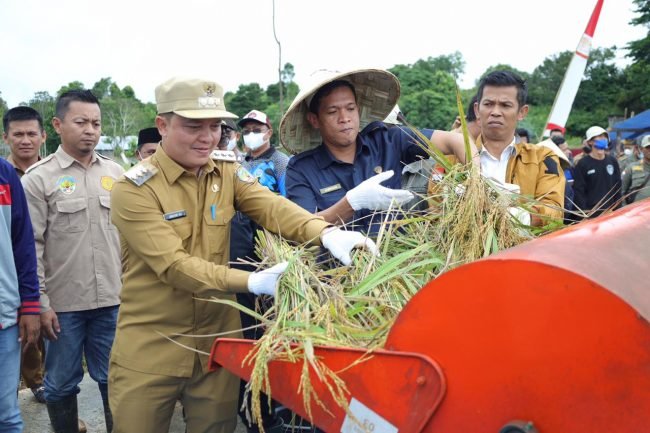 TANA TIDUNG – Bupati Tana Tidung bersama Ketua dan Anggota DPRD Tana Tidung, Sekda, Camat Tana Lia serta warga Kecamatan Tana Lia menghadiri panen padi sawah bersama di Kecamatan Tana Lia, Selasa, (4/1/2022).