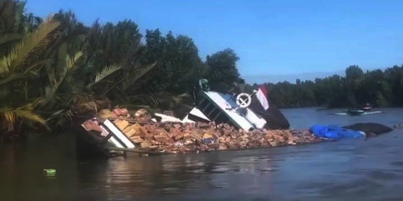 Dari video yang beredar, kondisi kapal warna tersebut miring, dan sebagian muatan sudah terendam air.