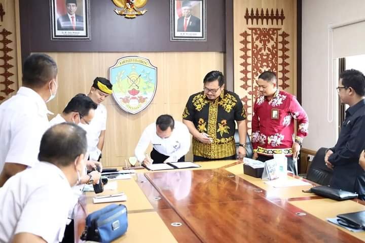 TANA TIDUNG – Bupati Kabupaten Tana Tidung (KTT), Ibrahim Ali menghadiri dan menyaksikan Forum Monitoring dan Evaluasi (Monev) atas Penyediaan fasilitas kesehatan (Faskes), sarana dan prasarana serta SDM Kesehatan bersama pemangku kepentingan utama, di ruang kerja Bupati, Rabu (20/4/2022).
