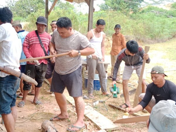 Tasa Gung Wakil Ketua Komisi 2 DPRD Bulungan bersama pemuda dan masyarakat Desa Jelarai bergotong royong menyiapkan dayung perahu panjang untuk meramaikan HUT Ri ke 77 Tahun, Senin (15/8)