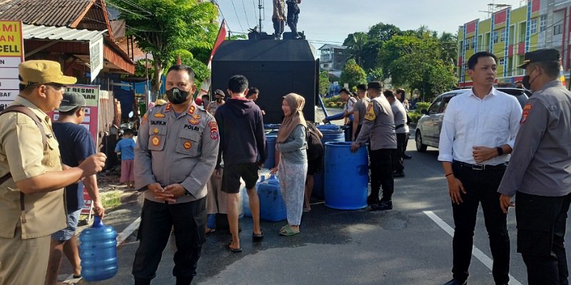 Kapolres Tarakan AKBP Taufik Nurmandia mengatakan kegiatan pendistribusian air bersih untuk masyarakat yang terdampak sudah dilakukan sejak Sabtu (20/8) lalu di beberapa titik.