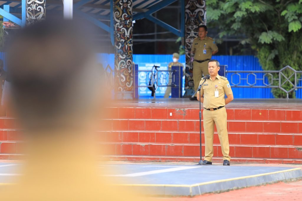 TANJUNG SELOR – Gubernur Kalimantan Utara (Kaltara), Drs. H. Zainal A. Paliwang, S.H., M.Hum., diwakili Asisten I Bidang Pemerintahan dan Kesejahteraan Rakyat, Datu Iqro Ramadhan, S.Sos., M.Si., memimpin apel pagi gabungan di lingkup Pemerintah Provinsi (Pemprov) Kaltara, pada Senin (5/9).