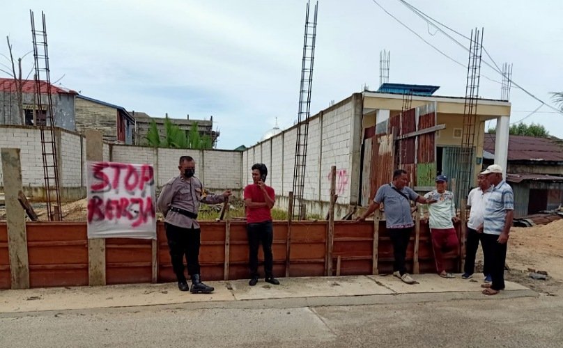 “Jadi dinding yang dibangun sudah masuk ke jalanan sekitar 70 cm di cornya itu. Makanya kami warga menolak dan menyetop pembangunannya, itu jalanan umum orang meninggal lewat disitu minimal 2 mobil 1 hari, di dalam juga ada sekolah SD dan TK,” ujar Zainuddin.