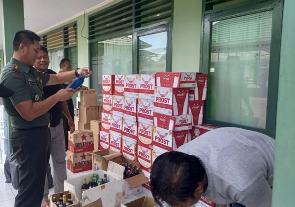 Tarakan – Kodim 0907 /Tarakan mengamankan ratusan botol minuman keras (miras) tanpa dilengkapi dokumen resmi, Rabu(15/02/2023).