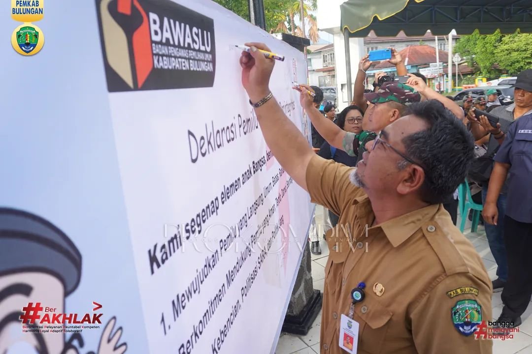 Bulungan – Badan Pengawas Pemilu (Bawaslu) Kabupaten Bulungan menggelar kegiatan Siaga Pengawasan Satu Tahun Menuju Pemilu Serentak 2024 di Tugu Tanjung Selor pada Selasa (14/2).