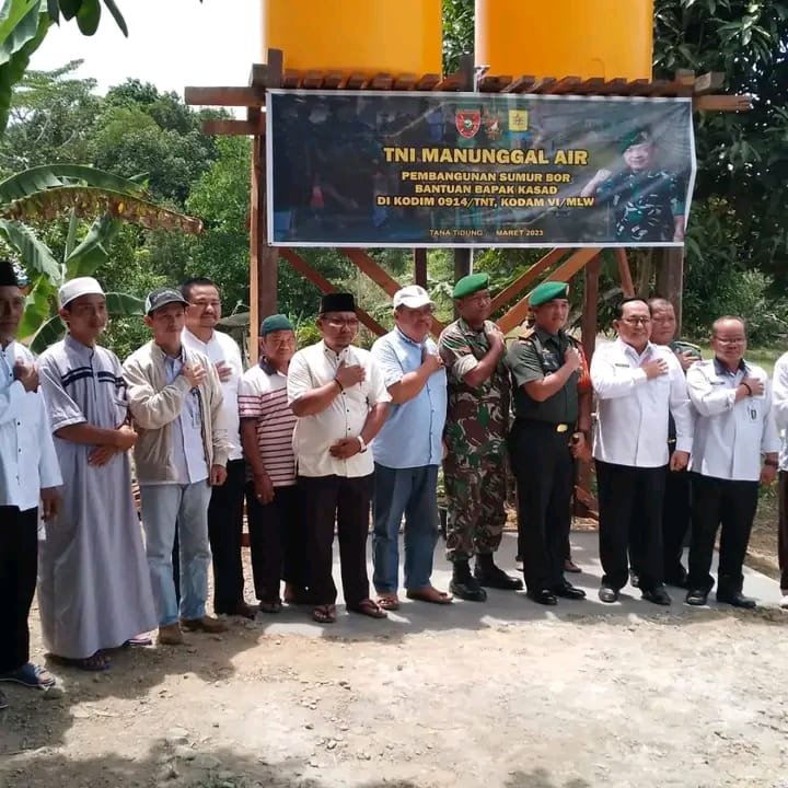 “Program TNI AD Manunggal Air ini merupakan perintah dari Kepala Staf Angkatan Darat, dengan tujuan untuk membantu kebutuhan air bersih masyarakat desa yang susah dengan air bersih karena masih banyak desa di kabupaten Tana Tidung yang masih mengandalkan Air hujan,†kata Dandim 0914/Tnt Letkol Inf Kresna Santy Dharma S.E., M.Han., Rabu, (29/03/2023).