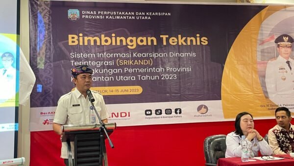 TANJUNG SELOR – Dinas Perpustakaan dan Kearsipan (DPK) Provinsi Kalimantan Utara (Kaltara) melaksanakan bimbingan teknis (Bimtek) Percepatan Sistem Informasi Kearsipan Dinamis Terintegrasi (SRIKANDI) tahap pertama untuk Perangkat Daerah di Lingkup Pemerintah Provinsi Kaltara.