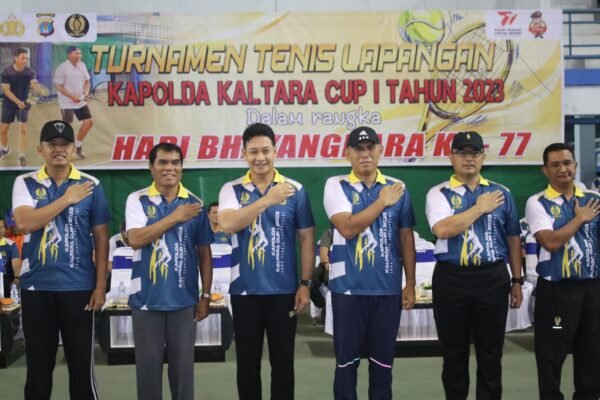 Bulungan – Memperingati hari Bhayangkara Ke 77, Polda Kalimantan Utara menggelar Turnamen Tenis Lapangan Kapolda Kaltara Cup I tahun 2023. Jum’at (16-06-2023).