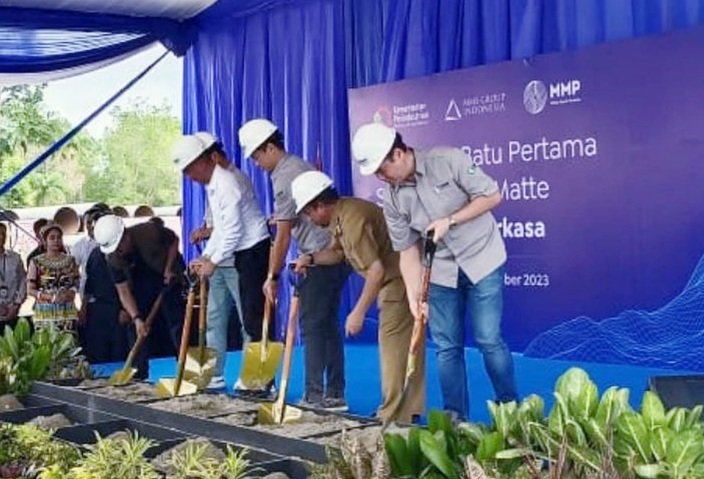 Peresmian mulainya pembangunan ditandai dengan peletakan batu pertama Smelter Nikel Matte, di lokasi MMP Site Kariangau, Balikpapan Barat, Kalimantan Timur, Senin 11 September 2023.