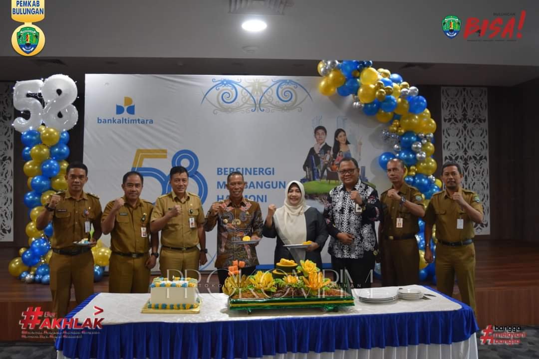 BULUNGAN – Bupati Bulungan, Syarwani, S.Pd, M.Si, Sekretaris Daerah, Risdianto, S.Pi, M.Si beserta jajaran mengikuti syukuran dan resepsi HUT ke 58 tahun 2023 PT BPD Kaltim Kaltara (Kaltimtara) di kantor cabang di Jl Jelarai, Tanjung Selor pada Senin (16/10).