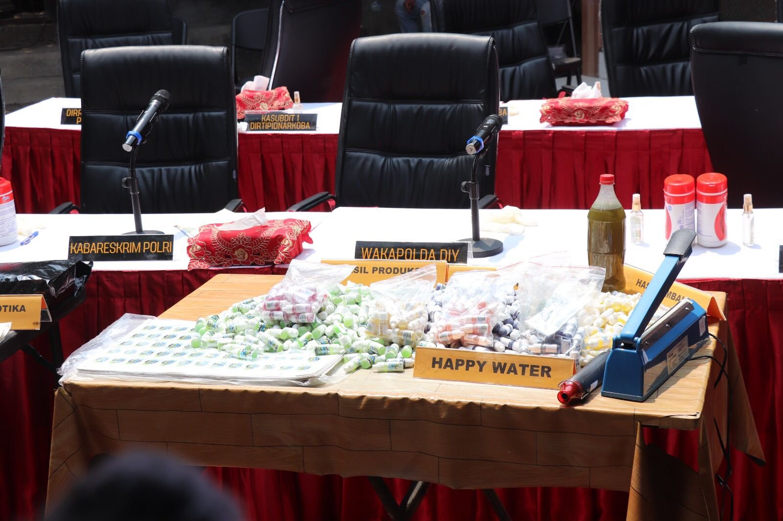 “Selanjutnya kita tangkap dua orang di Kaliaking, Magelang, keduanya produsen keripik pisang. Kemudian kita tangkap dua orang lagi di Potorono yang memproduksi happy water dan keripik pisang dan satu orang kita tangkap di Banguntapan ini,” ujarnya.
