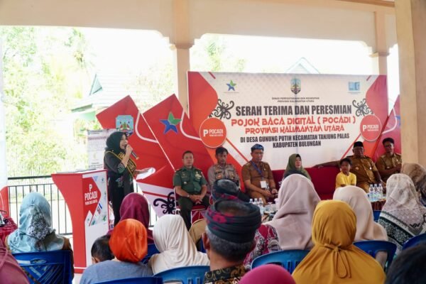 Sebelumnya pada siang hari kemarin, dilangsungkan gerakan gemar membaca. Dengan aksi membaca bersama 15 menit. Hadir langsung di tengah-tengah para pelajar yang ikut aksi ini, Bunda Literasi Kaltara Hj Rachmawati. Selain itu Bunda Literasi Kaltara menyerahkan bantuan Pojok Baca Digital (Pocadi) dari Perpusnas ke Perpustakaan Taruna Pustaka Desa Gunung Putih.