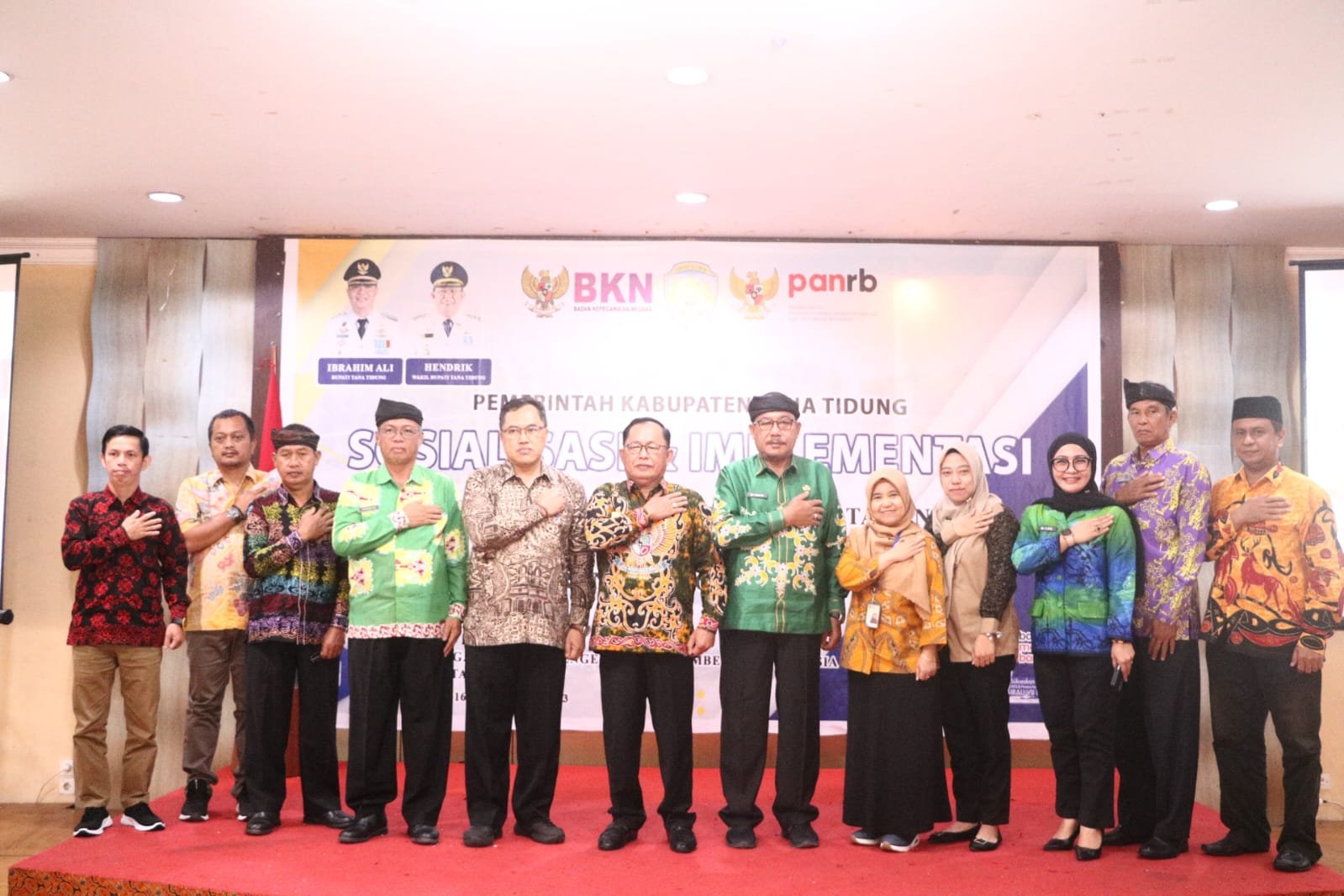 TANA TIDUNG – Pemerintah Kabupaten Tana Tidung melaksanakan sosialisasi dan Implementasi Peraturan Menpan RB No 1 Tahun 2023 dan Peraturan BKN Nomor 3 Tahun 2023 yang di laksanakan di ruang Pertemuan Hotel Royal Crown, Kota Tarakan, Rabu (15/11/2023).