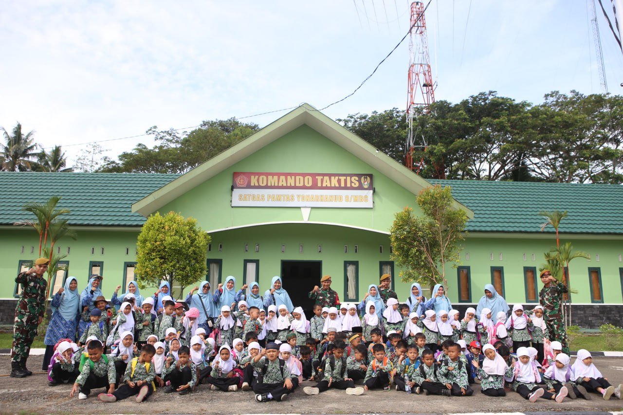 Kunjungan anak-anak dengan didampingi pihak sekolah itu, mendapat sambutan hangat dari Satgas.