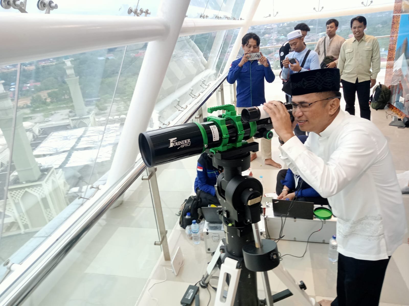 Wali Kota Balikpapan, Rahmad Mas'ud melakukan pengamatan hilal di menara BIC, Minggu (10/3/24)