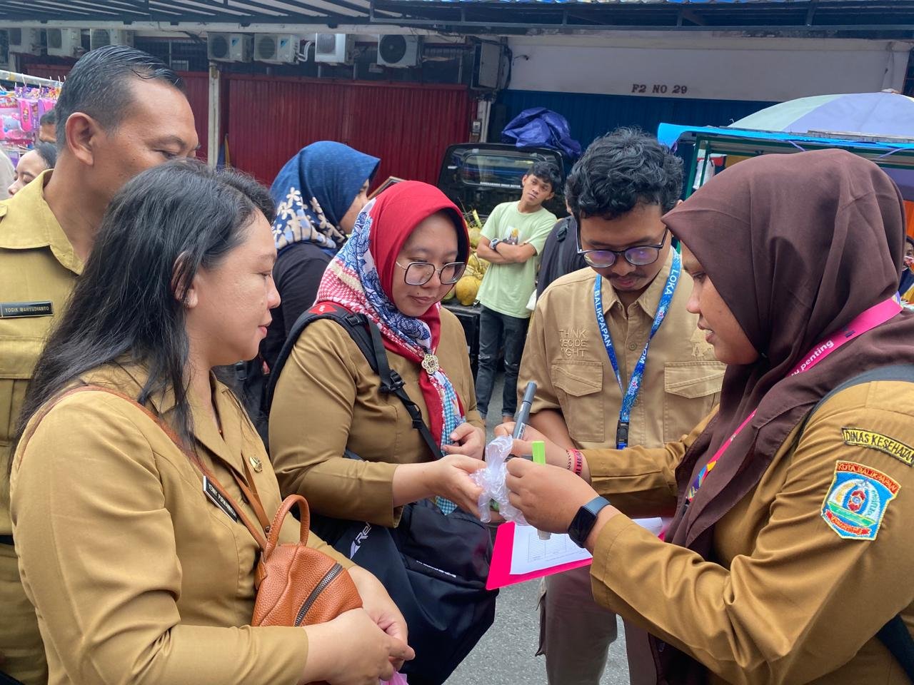 Tampak Wali Kota Rahmad Mas’ud dan kepala Loka POM Gersok Pararak bersama sejumlah instansi dn OPD meninjau pasar ramadan. Rombongn wali kota melihat meninjau langsung pasar ramadan di dua lokasi. Yakni Pasar Ramadan Ruko Bandar dan Balikpapan Permai. Wali kota juga langsung melihat hasil pengujian cepat dari beberapa sampel takjil Ramadan yang dilakukan DKK dan Loka POM Balikpapan.
