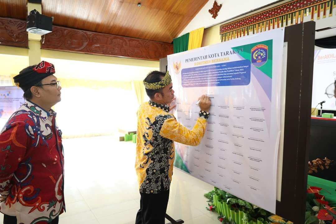Netralitas ASN tersebut dikuatkan melalui penandatanganan 4 komitmen ASN dan non ASN dalam Pilkada 2024 mendatang. Tidak hanya Penjabat, penandatanganan komitmen juga dilakukan Sekda, Asisten, Staff Ahli, camat hingga lurah.