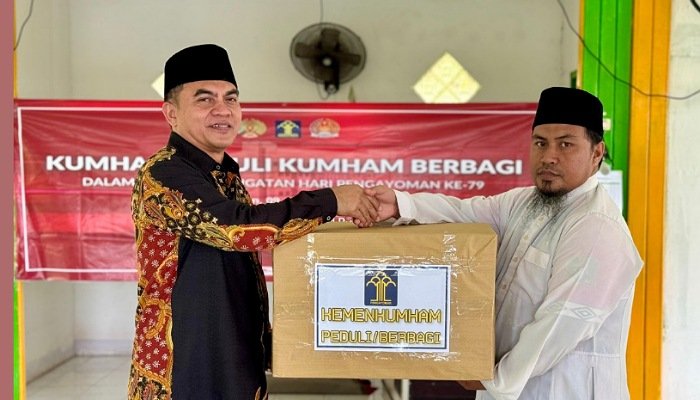 Bantuan sosial yang diberikan pada Kumham Peduli Kumham Berbagi ini antara lain Sembako, Pakaian Layak hingga peralatan tulis bagi anak-anak. Kegiatan ini merupakan bentuk kepedulian jajaran insan pengayoman kepada sesama di momen peringatan Hari Pengayoman Ke-79. (**/Humas)