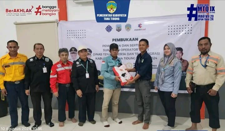 TANA TIDUNG, – Dinas Tenaga Kerja Dan Transimigrasi (Disnakertrans) Kabupaten Tana Tidung berkerjaasama dengan Kementrian Ketenagakerjaan dan Dinas Tenaga Kerja Provinsi Kalimantan Utara menggelar kegiatan Pembinaan dan Sertifikasi Surat Ijin Operator ( SIO). Kegiatan yang difasilitasi PT. Mandiri Inti Pekasa ini digelar pada 10 hingga 13 Agustus dan diikuti sekitar 31 orang peserta.