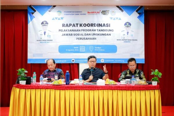 TANA TIDUNG, – Mensinergikan program Prioritas Pemerintah Daerah dengan Perusahaan yang ada di wilayah kerja Kabupaten Tana Tidung, dilakukan Rapat Koordinasi Pelaksanaan Tanggung Jawab Sosial dan Lingkungan Perusahaan, di Hotel Galaxy Tarakan pada hari Senin (12/8/2024).