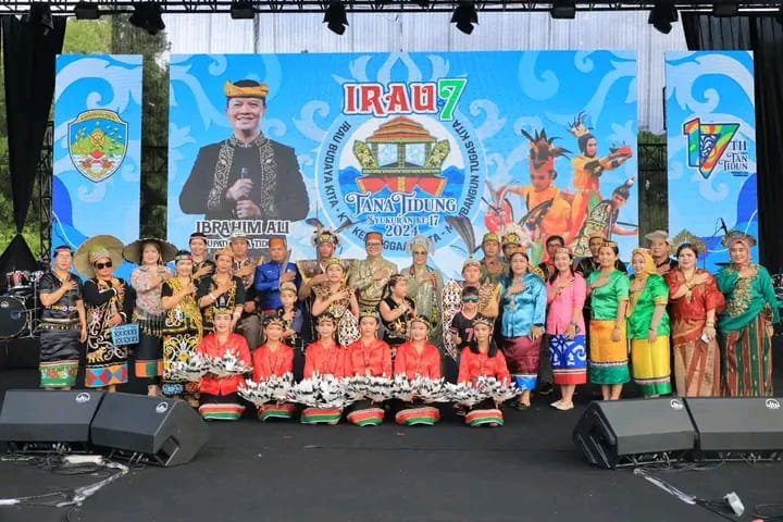 TANA TIDUNG – Bupati Tana Tidung Ibrahim Ali didampingi Istri menghadiri acara Pagelaran Pentas Seni dan Budaya Etnis dalam rangka memperingati HUT Kabupaten Tana Tidung ke 17 dan IRAU ke 7 di Laksanakan di Lapangan RTH Joesoef Abdullah Tideng Pale, Senin (26/8/2024).