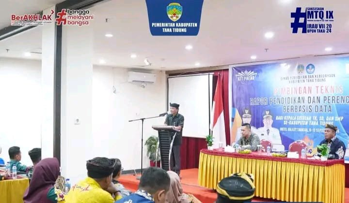 TANA TIDUNG, – Bupati Tana Tidung, Ibrahim Ali diwakili Plt. Sekda Tana Tidung, Idham Nur membuka Bimbingan Teknis Rapor Pendidikan dan Perencanaan Berbasis Data, Rabu (11/09/2024).