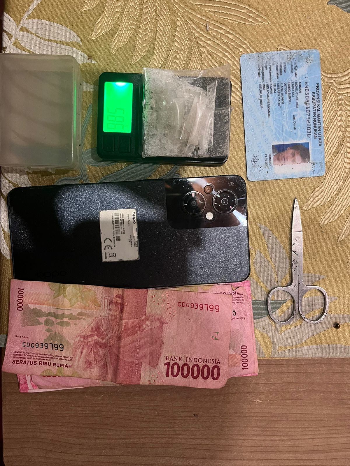 Setelah Tim Opsnal Ditresnarkoba Polda Kaltara mendapatkan tempat dan ciri-ciri orang dan mengetahui lokasi, selanjutnya Tim opsnal melakukan pengintaian. Di lokasi tersebut, AR beserta teman wanitanya langsung diamankan dan dilakukan penggeledahan badan.