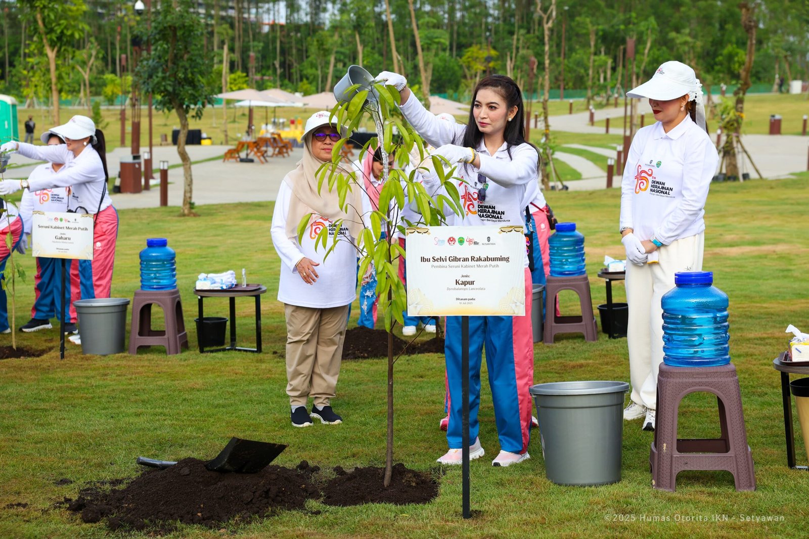 NUSANTARA- Dalam semangat membangun Ibu Kota Nusantara sebagai kota hutan yang hijau dan berkelanjutan, Kepala Otorita IKN, Basuki Hadimuljono, bersama Penasihat DWP OIKN, Kartika Basuki Hadimuljono, mendampingi Istri Wakil Presiden RI, Selvi Ananda Gibran Rakabuming, dalam kegiatan penanaman pohon di Plaza Bhineka Tunggal Ika, Kamis (10/07/2025) bersama-sama dengan para istri menteri Kabinet Merah Putih / Seruni serta dihadiri oleh pengurus Dharma Wanita Persatuan OIKN dan jajaran eselon 1 OIKN.