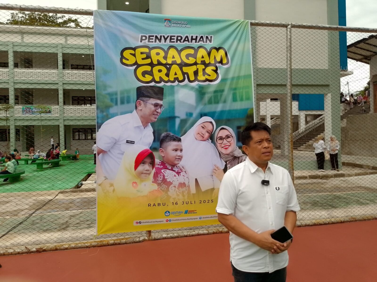 Kepala Dinas Pendidikan Kota Balikpapan, Irfan Taufik, dalam keterangannya saat meninjau distribusi di SMP Negeri 27 Balikpapan, menjelaskan seragam dibagikan kepada peserta didik mulai dari jenjang Pendidikan Anak Usia Dini (PAUD) hingga Sekolah Menengah Pertama (SMP), termasuk peserta program Sanggar Kegiatan Belajar (SKB).