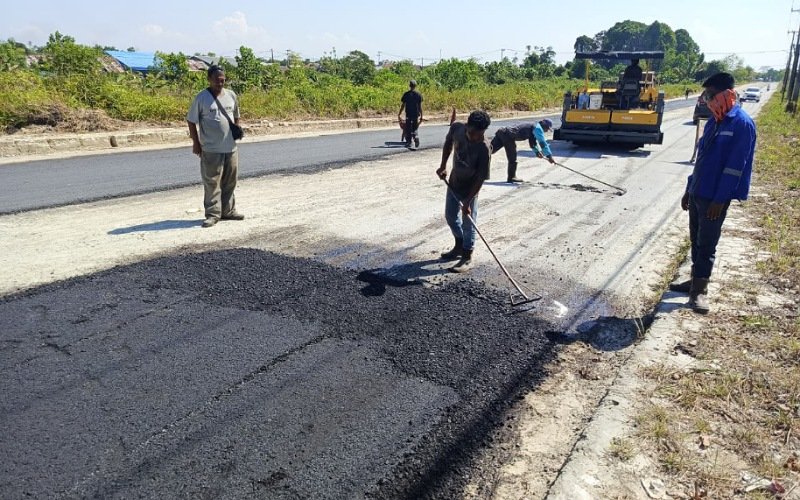 Pengerjaan pengaspalan jalan tersebut dilakukan dua tahap. Di mana tahap pertama sudah diselesaikan pada Februari 2024 lalu, dan tahap kedua telah rampung pada Agustus 2025. Dengan ketebalan pengaspalan jalan kedua sisi itu kurang lebih 6 sentimeter.