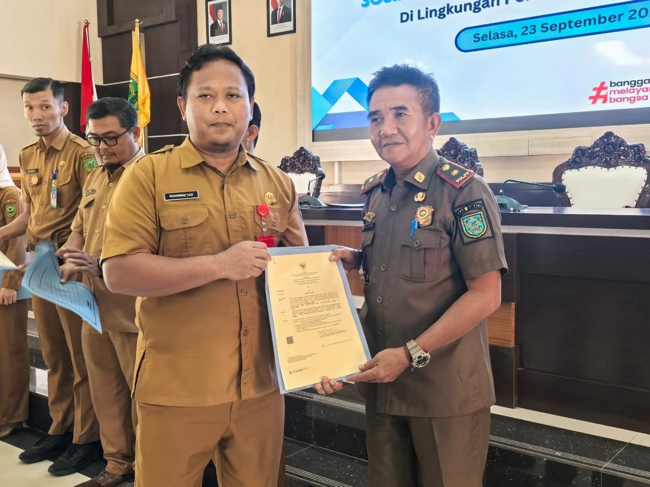 Penyerahan SK dilakukan langsung oleh Sekretaris Daerah (Sekda) Berau, Muhammad Said, didampingi Kepala BKPSD, Sri Eka Takariyati, Asisten III Setda Berau, Maulidiyah, Kepala Dinas Komunikasi dan Informatika, Didi Rahmadi, serta pejabat terkait lainnya.