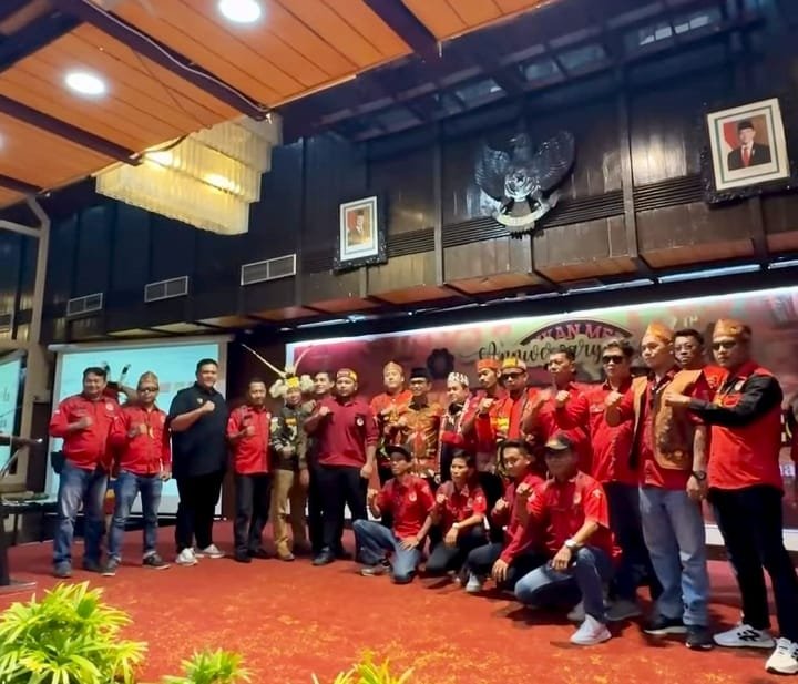Suasana acara berlangsung hangat dan penuh warna. Para peserta hadir mengenakan pakaian adat khas Dayak dan seragam organisasi, memperlihatkan kekompakan serta kebanggaan terhadap identitas budaya mereka.