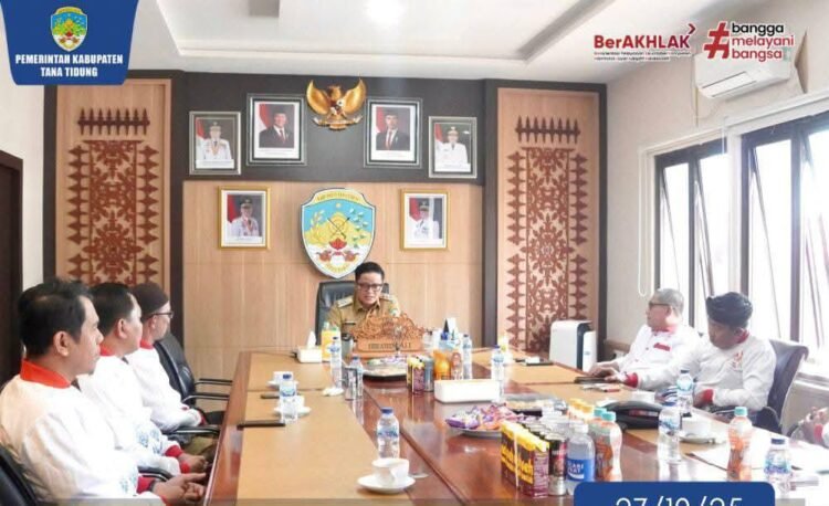TANA TIDUNG, Fokusborneo.com — Silaturahmi antara Bupati Tana Tidung, Ibrahim Ali, dan pengurus Komite Olahraga Nasional Indonesia (KONI) Kabupaten Tana Tidung berlangsung di Ruang Rapat Bupati pada Senin (27/10/2025).