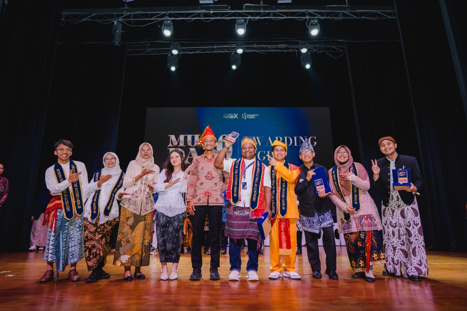 Perwakilan sembilan komunitas gerakan Inklusi Sosial: Saatnya Berperan menerima penghargaan The Best Project Townhall dalam ajang Muda 30 di Taman Ismail Marzuki, Jakarta, sebagai bentuk apresiasi atas kolaborasi mereka dalam mendorong kampus yang aman dan inklusif.