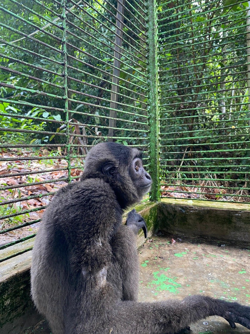 “Ketika petugas pertama kali menyentuh punggungnya, tulang terasa lebih dulu sebelum kulit. Tidak ada perlawanan. Tidak ada suara. Seolah seluruh ingatan tentang menjadi owa telah lama terhapus,” kenang Linus kembali bercerita.