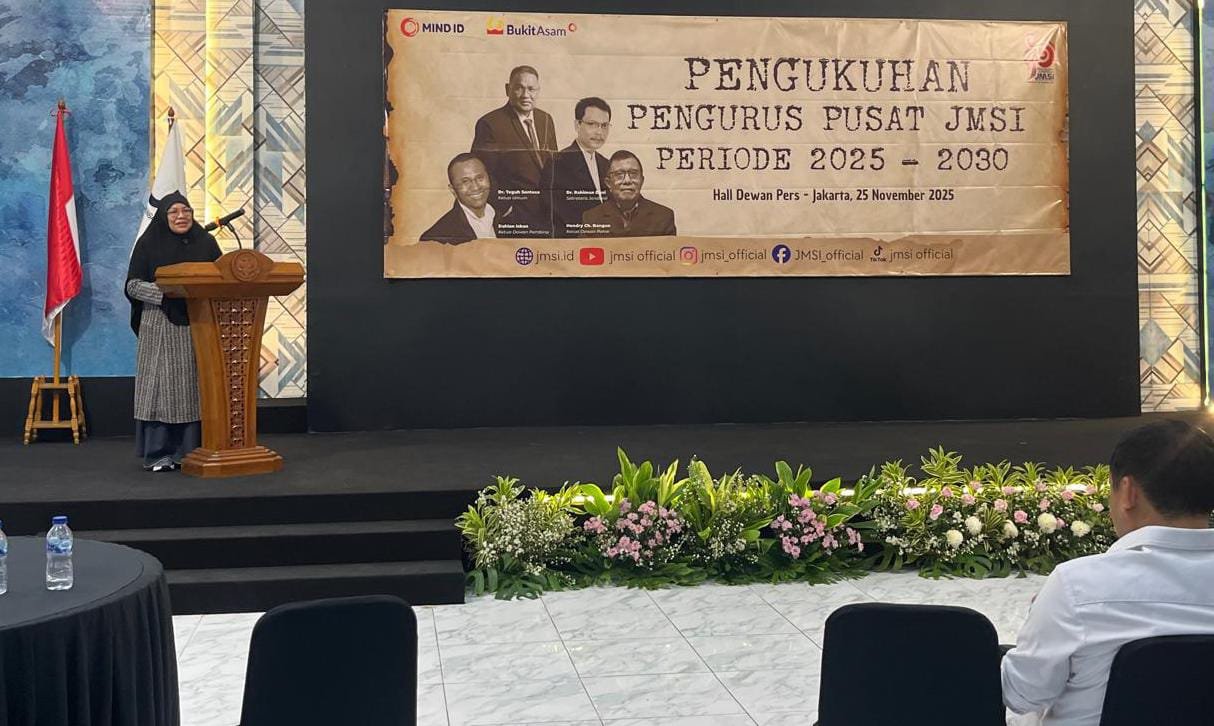 JAKARTA, Fokusborneo.com – Ketua Umum Dewan Pengurus Nasional Koalisi Nasional Reforma Agraria (DPN KNARA), Wahida Baharuddin Upa SH, tampil sebagai insert speaker di hadapan para pemilik media anggota Jaringan Media Siber Indonesia (JMSI) pada momentum Pengukuhan Pengurus Pusat JMSI Selasa (25/11/2025) di Hall Dewan Pers- Jakarta.