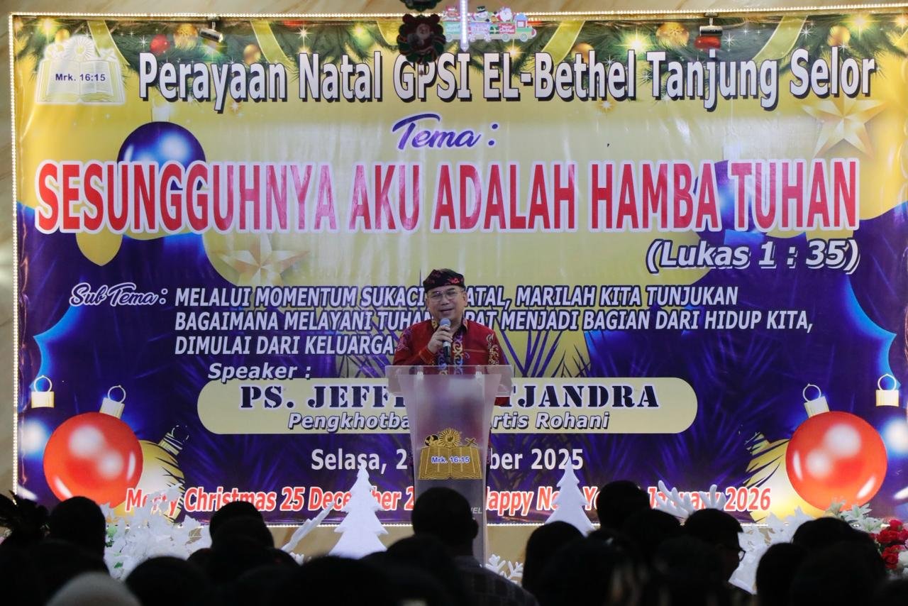 TANJUNG SELOR, Fokusborneo.com – Menjelang Hari Natal pada 25 Desember 2025 mendatang, Gereja Pantekosta Serikat Indonesia (GPSI) El-Bethel Tanjung Selor menggelar perayaan natal yang berlokasi di Jalan Salak pada Selasa (2/12) malam.