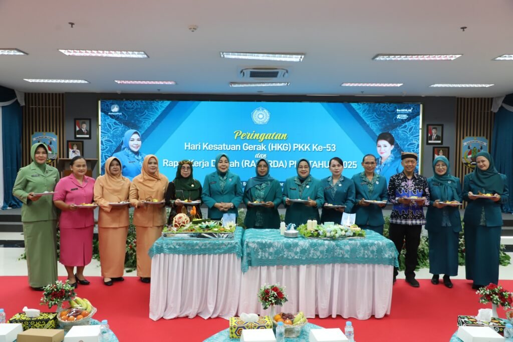 TANJUNG SELOR – Ketua Tim Penggerak Pemberdayaan dan Kesejahteraan Keluarga (TP PKK) Kalimantan Utara (Kaltara), Hj. Rahmawati Zainal, S.H., menghadiri kegiatan Peringatan Hari Kesatuan Gerak (HKG) PKK Ke-53 dan Rapat Kerja Daerah (Rakerda) 2025, yang digelar di Aula Lantai 1 Kantor Gubernur Kaltara, Minggu (14/12).