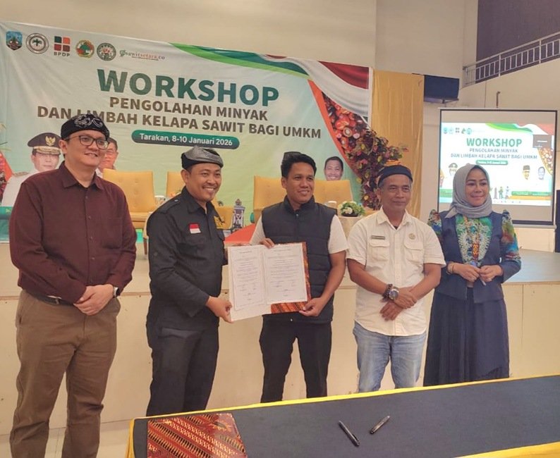 TARAKAN, Fokusborneo.com – Dewan Pimpinan Wilayah (DPW) Asosiasi Petani Kelapa Sawit Indonesia (APKASINDO) Kalimantan Utara (Kaltara) menggelar Workshop Pengelolaan Minyak dan Limbah Kelapa Sawit bagi UMKM di Ballroom Hotel Lotus Panaya, Jumat (9/1/26).