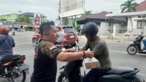 TARAKAN – Suasana sore di simpang lampu merah Ladang, Tarakan Tengah, Minggu (8/3/2026), tampak berbeda dari biasanya. Puluhan anggota Dewan Pimpinan Cabang (DPC) Laskar Pemuda Adat Dayak Kalimantan (LPADKT) Kota Tarakan berdiri di tepi jalan sambil membagikan paket takjil kepada para pengguna jalan yang melintas.