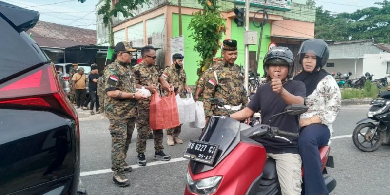 TARAKAN – Suasana sore di simpang lampu merah Ladang, Tarakan Tengah, Minggu (8/3/2026), tampak berbeda dari biasanya. Puluhan anggota Dewan Pimpinan Cabang (DPC) Laskar Pemuda Adat Dayak Kalimantan (LPADKT) Kota Tarakan berdiri di tepi jalan sambil membagikan paket takjil kepada para pengguna jalan yang melintas.