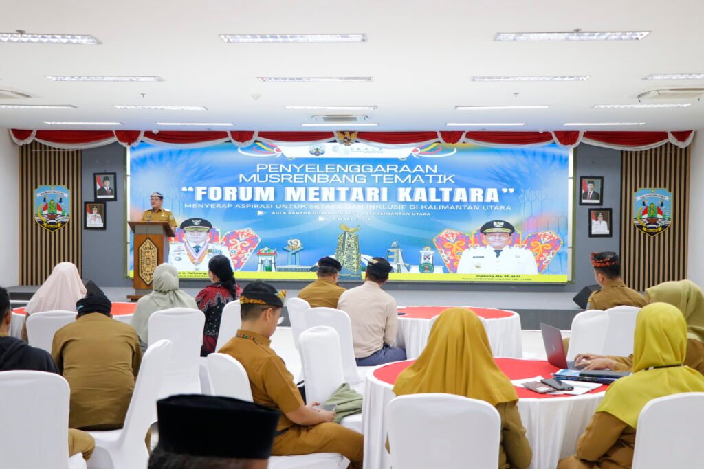 TANJUNG SELOR, Fokusborneo.com – Wakil Gubernur (Wagub) Kalimantan Utara (Kaltara) Ingkong Ala, S.E., M.Si., membuka kegiatan Musyawarah Perencanaan Pembangunan (Musrenbang) Tematik Forum Penjaringan Aspirasi Mentari Kaltara (Menyerap Aspirasi untuk Setara dan Inklusif di Kalimantan Utara), digelar di Ruang Serbaguna Kantor Gubernur Kaltara, Senin (9/3) pagi.