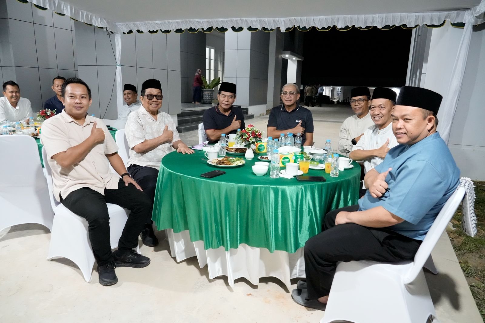Menjelang waktu berbuka puasa, rombongan berkumpul di Rumah Jabatan Gubernur Kaltara. Suasana hangat terasa saat gubernur menjamu tamunya untuk berbuka puasa bersama sebelum melaksanakan salat Isya dan Tarawih berjamaah.
