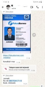 “ID card yang digunakan oleh oknum tersebut bukan ID resmi dari Fokusborneo.com. Kami tegaskan bahwa itu adalah bentuk penipuan yang mencatut nama redaksi, termasuk nama saudara Jumadi,” ujar Ika.